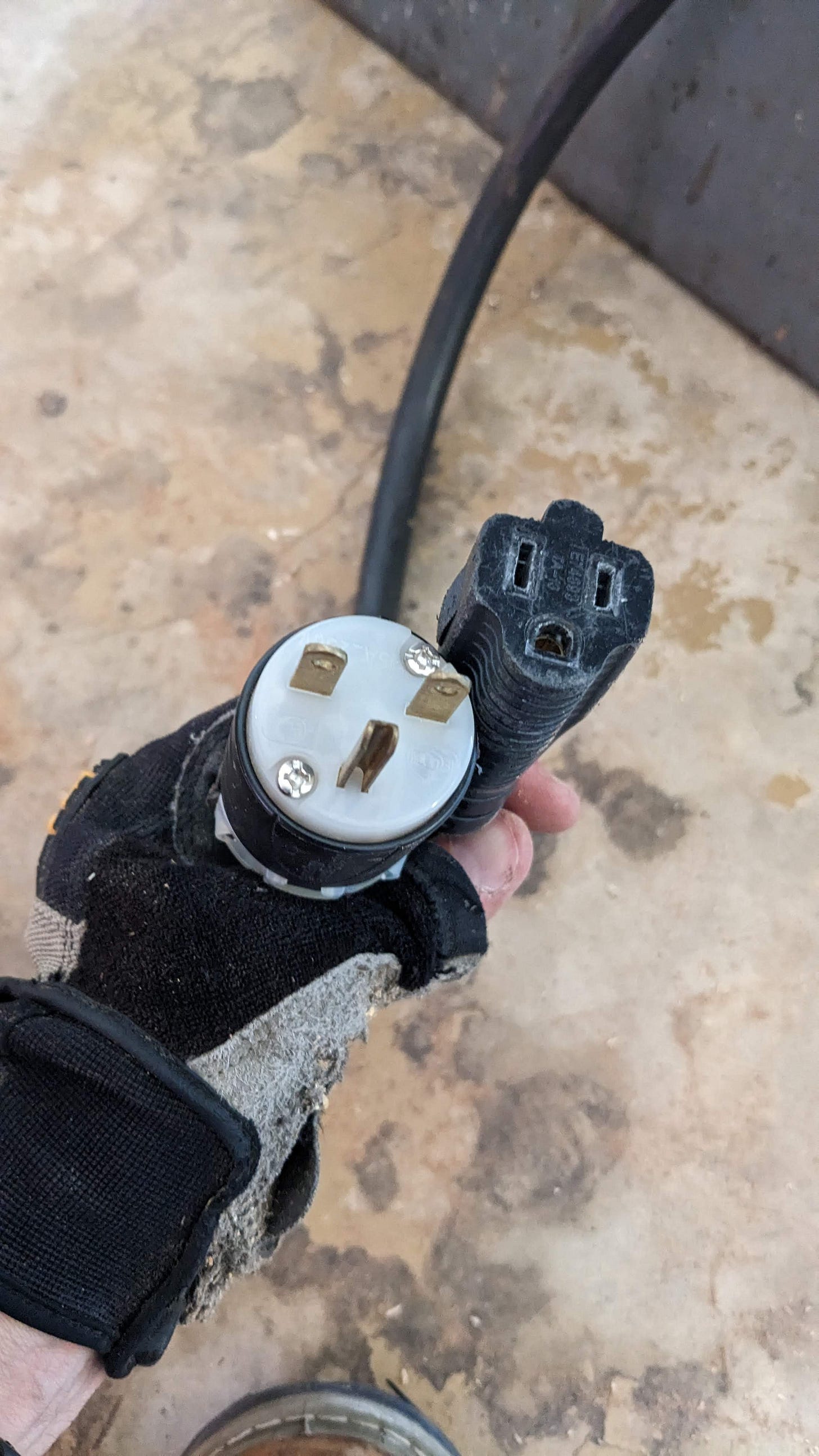 Another couple of hours of tinkering and I finally had it put back together and was reasonably sure I had gotten it right. I didn’t have any bolts or nuts left over anyway. That seemed like a good sign. I went to plug it in and then discovered that it was not a typical plug.